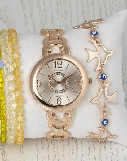 Gold metal saat yanı kombinimizi çok beğenerek kullanacağınız gibi aynı zamanda size şans getireceğini düşünüyoruz.